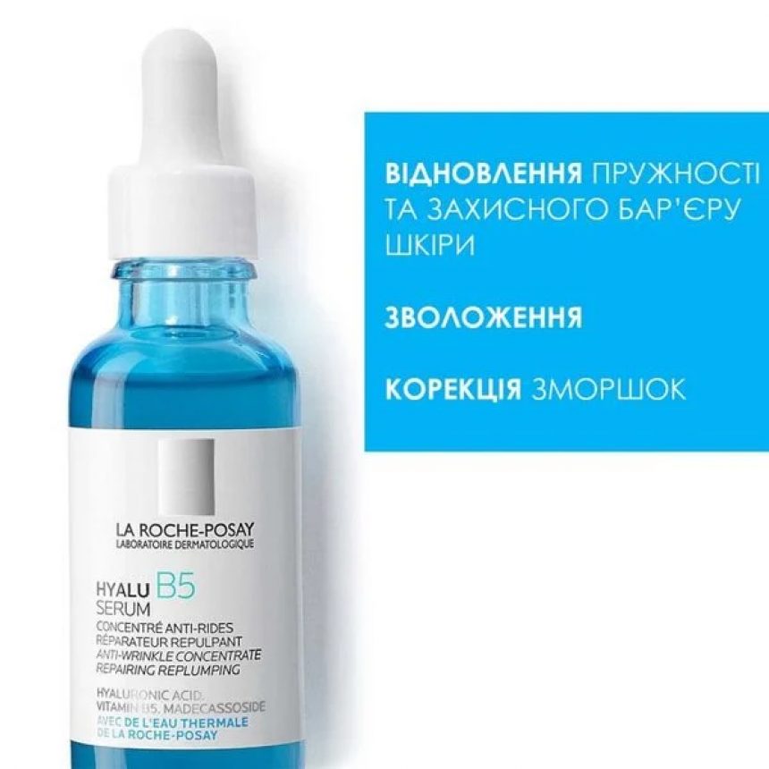 La Roche-Posay Hyalu B5 Serum — дерматологічна сироватка, створена для інтенсивного зволоження та щоденного догляду за шкірою, зокрема чутливою. Формула поєднує дві форми гіалуронової кислоти та вітамін B5 (пантенол), які сприяють покращенню зовнішнього вигляду шкіри та відчуттю комфорту.